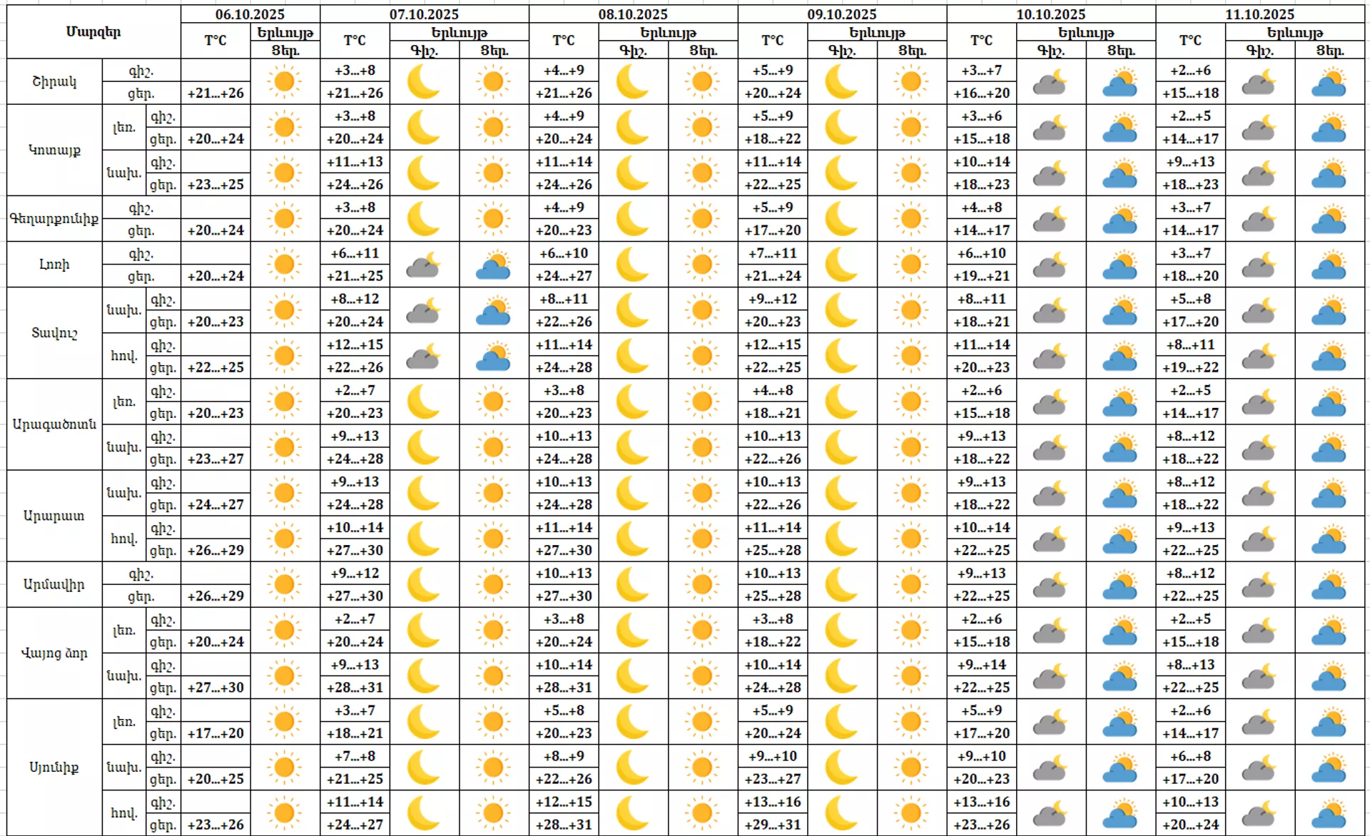 Օդի ջերմաստիճանը հոկտեմբերի 7-8-ին կշարունակի աստիճանաբար բարձրանալ ևս 2-3 աստիճանով: